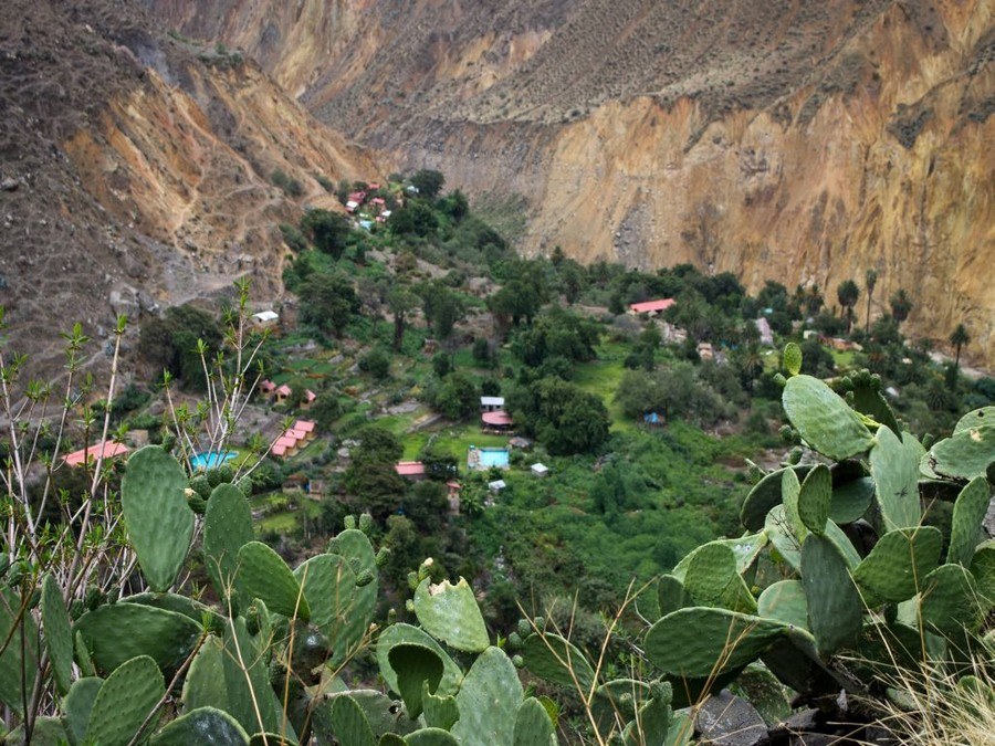 Between 03: 00 am to 03: 30 am you will be picked up from your hotel in Arequipa to travel to the Colca Canyon. After approximately four hours of travelling we will reach the main Valley, Chivay. We will stop here so you can have breakfast and then continue the trip until we reach the village of Cabanaconde (1.45h). From this calm local village starts our hike down to the base of the Colca Cañon, which take us approximately 3 ½ to 4 hours. During our descend we get to see the diverse vegetation between Andean and tropical and the geological formations of the Colca Canyon, part of the formation of the Andean Cordillera. There is even already a good possibility to see a condor flying back to its nest!