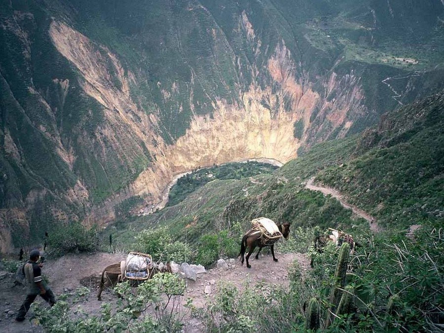 In the cold, dry, highlands, livestock production predominates, focused on alpaca and llamas; in the middle zone, agriculture is more important, featuring products such as corn, quinua, barley, beans, and a variety of potatoes, as well as dairy production; in the canyon, due to the warmer climate, fruit production is possible, including avocados, lucuma, peaches, and apples.